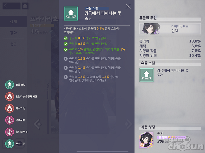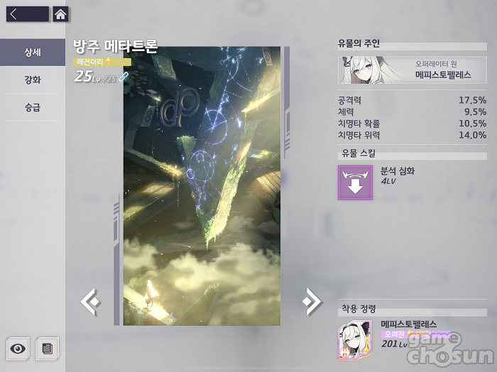 유물 등급이 오를수록 유물 스킬의 효과도 상승하기 때문에 주력으로 상승하는 유물을 승급하는 것은 필수적이다. 다만, 아무래도 실제 성장 레벨과 연관이 되는 정령 승급이 우선되는데다, 유물 승급을 위한 유물 조각 개수가 기하급수적으로 늘어나기 때문에 무턱대고 특정 캐릭터에게만 올인하는 것은 오히려 성장의 발목을 잡을 수 있다.