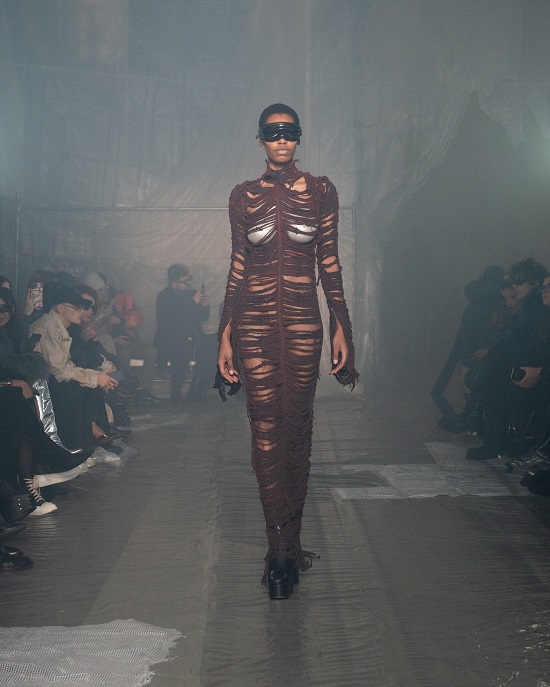 • 한 코펜하겐이 소개하는 ‘Chthonic Penumbra’ 컬렉션은 한 장르를 정의한 게임의 어두운 모퉁이에서 잉태된 예술적 비전이다. 컬렉션의 디자인은 수작업으로 가공한 인조 모피, 비건 레더, 깃털 소재를 활용하고, 회색과 검은색이 주를 이루는 색조에 흰색과 진주, 크롬과 같은 좀더 부드러운 요소를 더했다. 드라마틱한 쇼케이스는 "아름다운 곳으로서의 지옥"의 이미지를 떠올리게 하는 것을 의도하여 준비됐다.