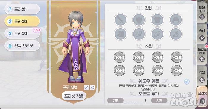 다음으로 '프리셋' 기능은 장비와 스킬과 더불어, 포인트 분배까지도 모두 교체할 수 있는 시스템이다. 라그나로크X는 KVM, 전장 등의 PvP 콘텐츠와 더불어 던전 및 보스 몬스터 공략, 사냥 등의 PvE 콘텐츠가 마련돼 있다. PvP 혹은 PvE를 즐길 때마다 효율을 높이기 위해서는 각 콘텐츠에 맞게 장비 및 스킬, 포인트 세팅을 변경해줘야 하는데, 이는 매우 번거로울 뿐만 아니라 스킬 초기화 및 포인트 초기화 시에는 수정 상점 NPC에게서 수정을 소모해 섬광막대 혹은 윤회의 돌을 구매해야하기에 매우 부담이 된다.
