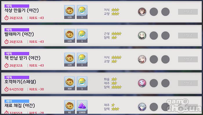 영지도 자원과 능력치 상승을 얻을 수 있기 때문에 결국 아르바이트는 필수 요소가 된다. = 게임조선 촬영