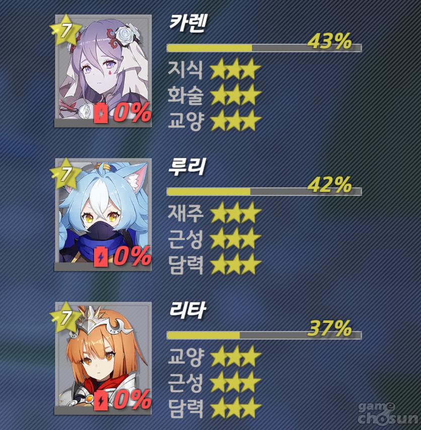 | 카렌 | 3 | 3 | 3 | 3/3/3 |