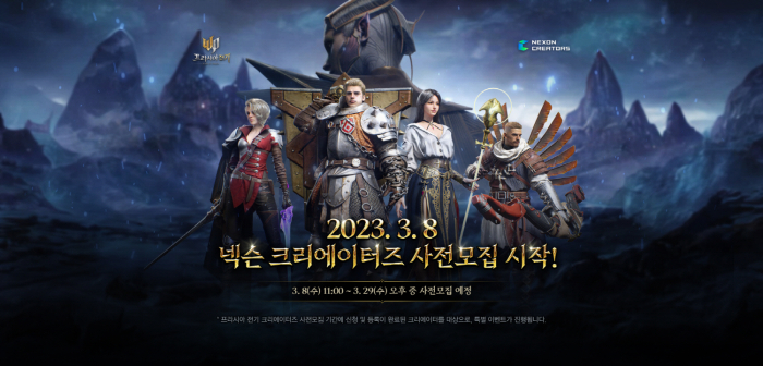 넥슨은 작년 8월 ‘히트2’에서 해당 서비스를 베타 형태로 최초 도입해 6개월 이상 운영하며 게임 내에서 많은 이용자들과 크리에이터간 참여와 교류를 이끌어냈다. 이에 ‘넥슨 크리에이터즈’로 서비스를 새단장해 시즌제로 운영하면서 크리에이터 등급을 기존 YELLOW, GREEN, BLUE 등급에 최상위 BLACK 등급을 신설해 혜택을 늘린다. 적용 대상 게임 역시 오는 3월 30일 출시할 신작 MMORPG ‘프라시아 전기’로 확대한다.