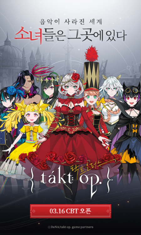 [자료제공 = 위드피알] 디엔에이(DeNA)는 자사가 개발하고 서비스 예정인 신작 모바일 RPG ‘탁트오퍼스(takt op.) 부제: 운명은 새빨간 선율의 거리를(이하 탁트오퍼스)’의 클로즈 베타 테스트(CBT)를 실시한다고 16일 밝혔다.
