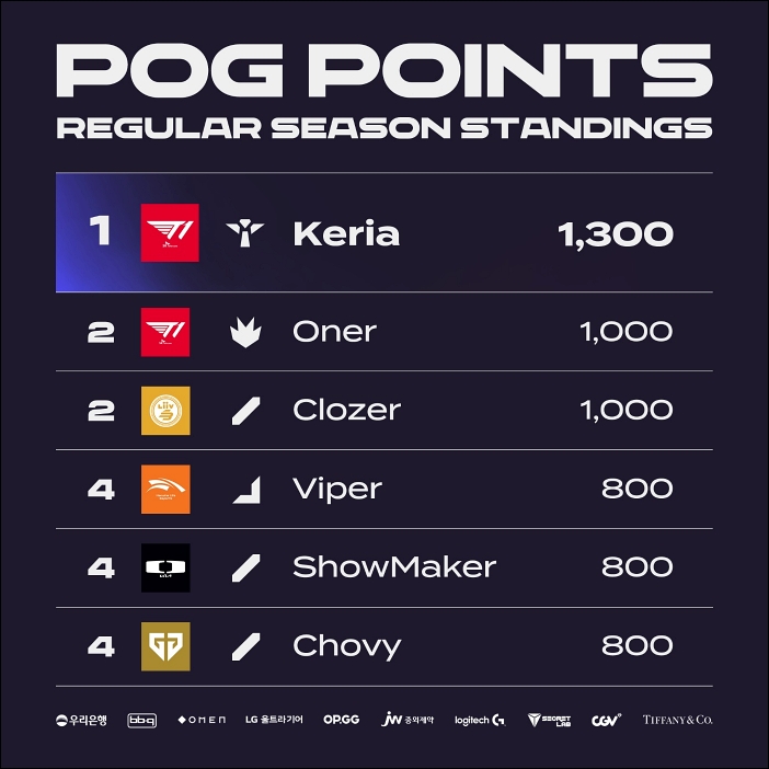 정규 리그 1위를 일찌감치 확정 지은 T1은 9주 차에서 라운드 스윕에 도전했다. 16일 디플러스 기아를 상대한 T1은 1세트에서 '케리아' 류민석의 쓰레쉬, 2세트에서는 '페이커' 이상혁의 르블랑을 앞세워 2대0으로 완승을 거뒀다. 1세트에서 플레이어 오브 더 게임(Player Of the Game; POG)으로 선정된 류민석은 스프링 POG 1위를 확정 지었다.