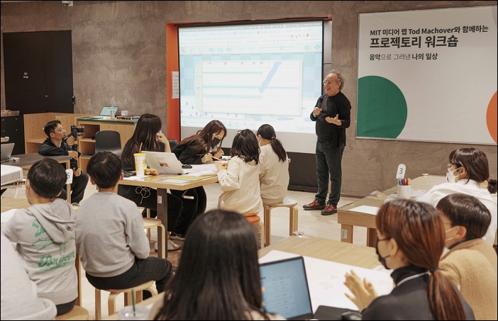 [자료제공 = 엔씨소프트] NC문화재단(이사장 윤송이)은 지난 3월 18일 미국 매사추세츠공과대학(MIT) 미디어랩의 학과장이자 ‘미국의 가장 혁신적인 작곡가’라 불리는 크리에이티브 디렉터, 토드 마코버와 함께 음악 창작 워크숍을 개최했다. 이번 워크숍은 NC문화재단의 대표 사업, ‘프로젝토리(Projectory)’의 첫 외부 전문가 협력 워크숍으로 프로젝토리 청소년 멤버 및 운영 크루 30여 명이 참여했다.