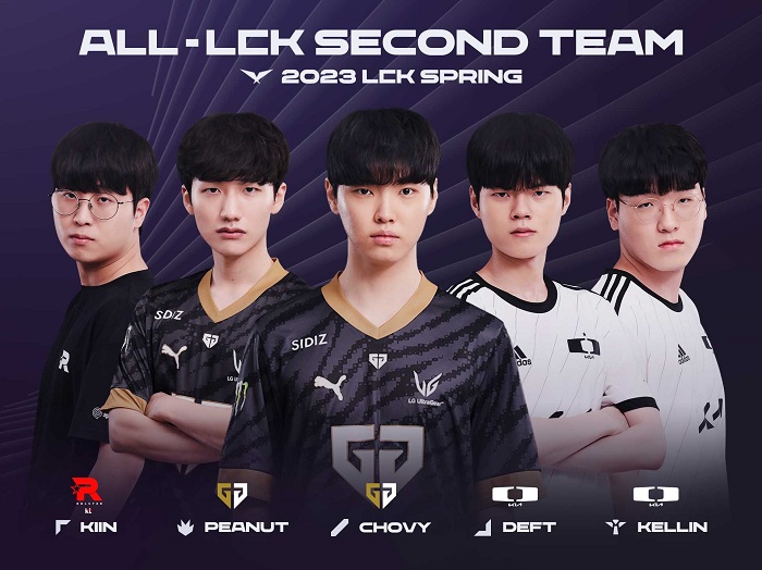 올 LCK 세컨드 팀에는 KT 롤스터의 탑 라이너 '기인' 김기인, 젠지의 정글러 '피넛' 한왕호와 미드 라이너 '쵸비' 정지훈, 디플러스 기아의 원거리 딜러 '데프트' 김혁규와 서포터 '켈린' 김형규가 선정됐다.