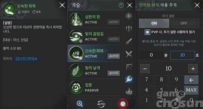 활력 제한을 설정하지 않으면 버프 기술을 사용하지 않아 사냥 효율이 떨어진다 = 게임조선 촬영