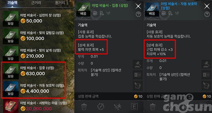 마법의 비술서는 효율이 굉장히 좋은 패시브니 꼭 구입하자 = 게임조선 촬영