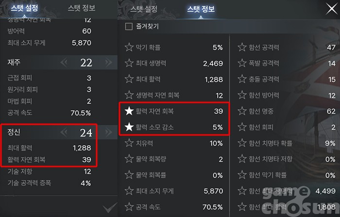 활력 자연 회복은 있으면 좋지만, 부족하다고 해서 초반부터 정신에 투자할 필요는 없다 = 게임조선 촬영