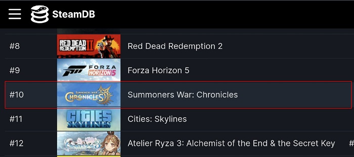 [자료제공 = 컴투스] 컴투스의 소환형 RPG ‘서머너즈 워: 크로니클(이하 크로니클)’이 글로벌 출시 2주 차 대규모 업데이트 후 PC게임 플랫폼 스팀의 전 세계 종합 매출 순위 10위에 오르며, 최고 순위 기록을 경신했다. 이와 함께 출시 후 글로벌 일간 최대 매출 기록도 새로 썼다.