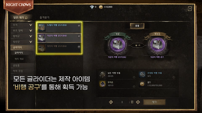<나이트 크로우>에는 지상과 공중을 자유롭게 이동할 수 있는 ‘지상 탈 것’과 ‘글라이더’가 존재한다.