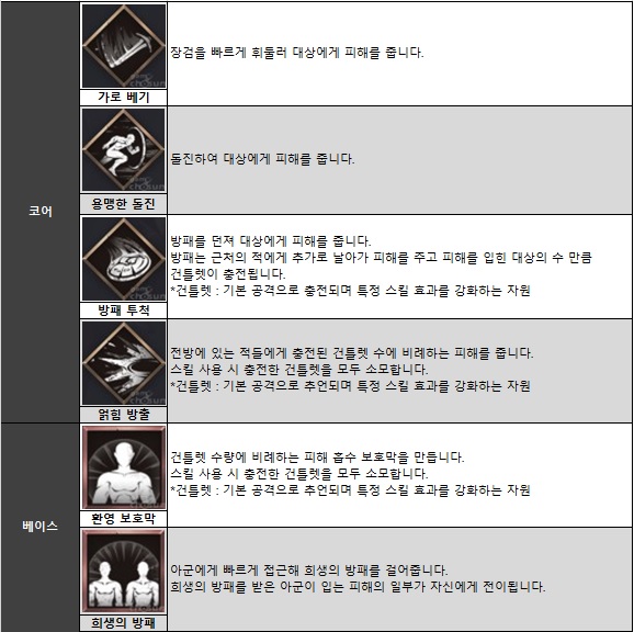 CM 노트를 통해 공개된 클래스 정보에서는 각 클래스의 스탠스 및 대표 스킬, 그리고 아퀴룬을 통한 스킬 성장에 대해 확인할 수 있다.