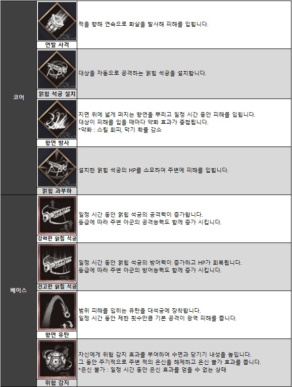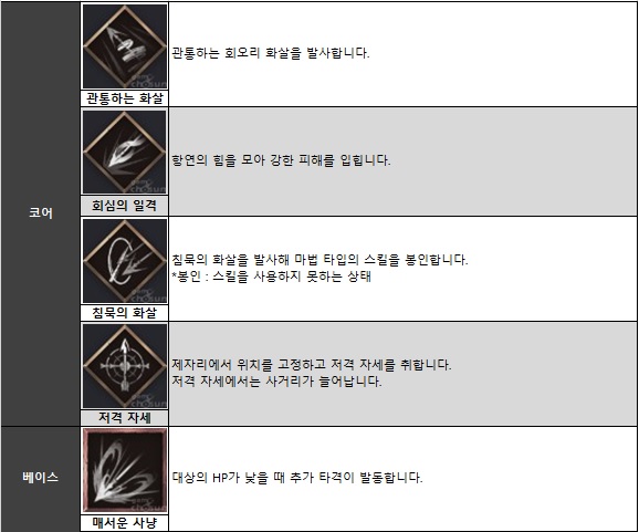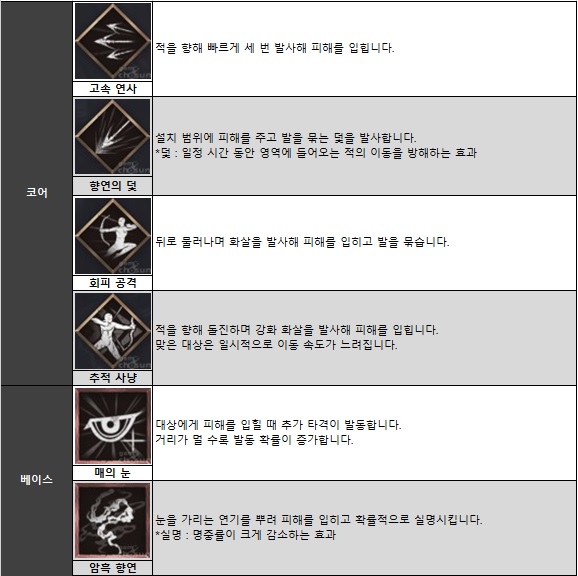 ■ '향사수' 주요 스킬