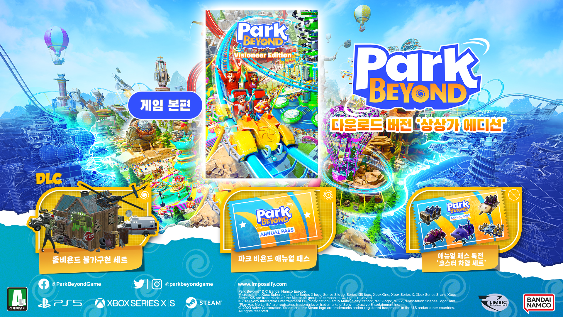 [자료제공 = 반다이남코 엔터테인먼트 코리아] 반다이남코 엔터테인먼트 코리아(대표 제랄드 누난)는 PlayStation®5, Xbox Series X|S, STEAM®용 테마파크 경영 시뮬레이션 ‘파크 비욘드’(Park BEYOND)’(한국어판)을 2023년 6월 16일(금) 발매한다고 발표했다.