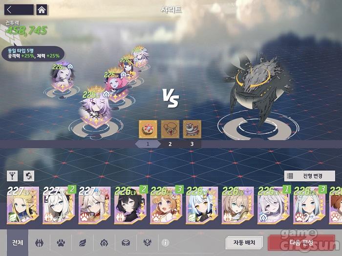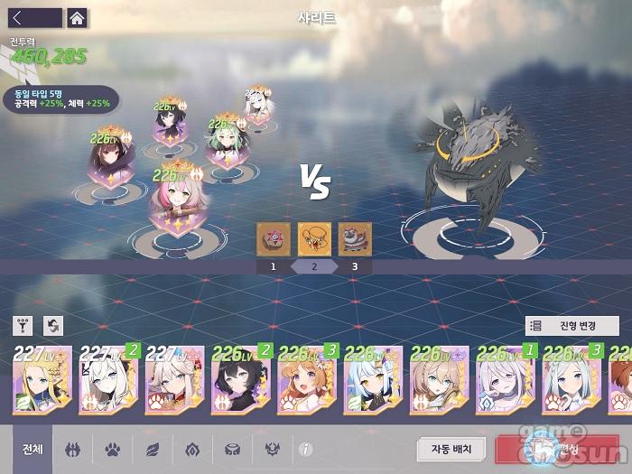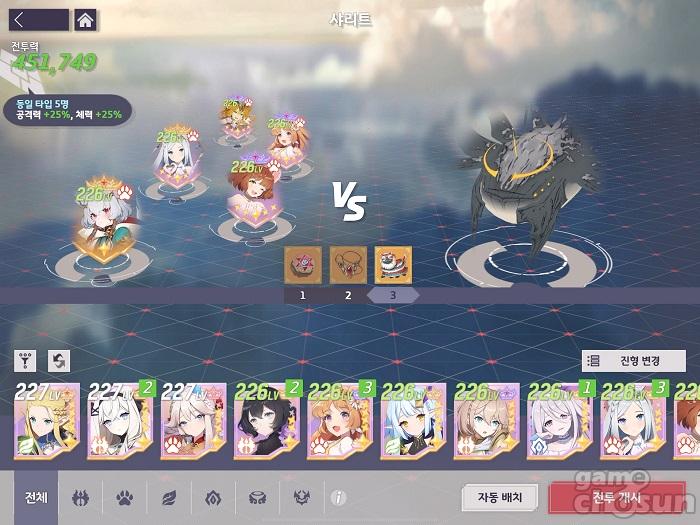 다른 파티와 다르게 힐러를 프림 1명만 사용한다. 대신 보호막은 탱커인 페트라를 이용한다. = 게임조선 촬영