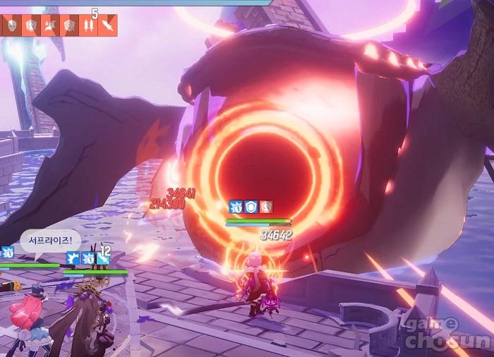 샤리트의 패턴 중 가장 조심해야 할 흡수 패턴, 보호막으로 막아낼 수 있다. = 게임조선 촬영