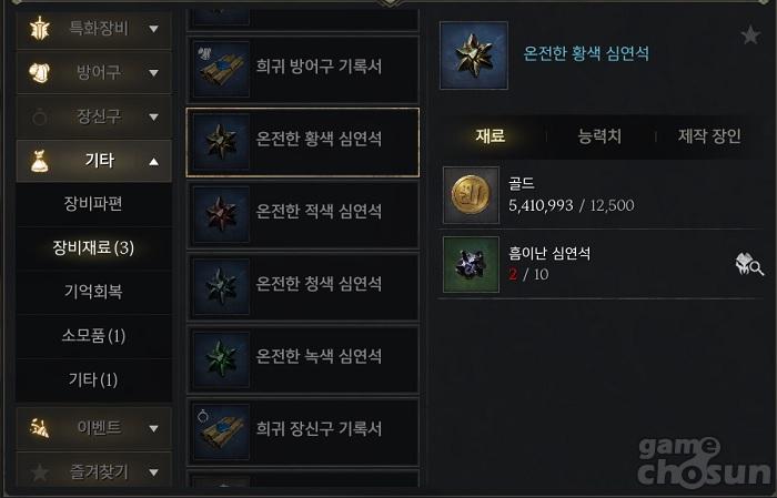 고급 심연석 10개를 모아 희귀 심연석으로 제작 가능하지만, 성공 확률은 10% = 게임조선 촬영