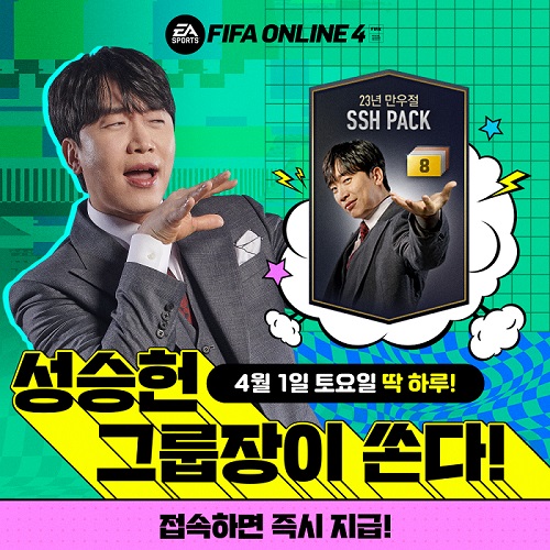 성승헌 캐스터는 그룹장 신분으로 회의를 진행하고 유명 선수에게 축전을 부탁하는 등 엉뚱한 장면을 연출하지만 이내 박정무 그룹장이 나타나며 다시 본 모습으로 돌아가게 돼 웃음을 자아냈다. 뿐만 아니라 4월 1일 하루 내 게임에 접속한 모든 이용자에게 ‘[22년 만우절] SSH 선수팩’과 ‘1,000 FC’ 아이템을 선물했다.