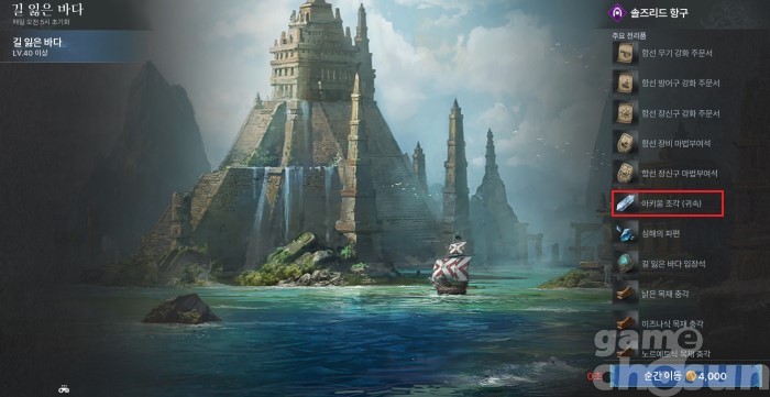 카카오게임즈가 서비스 중인 '아키에이지 워' 속 콘텐츠 '길 잃은 바다'는 함선을 이용해 해상전을 펼치고, 별자리 연구 재료인 '아키움 조각'을 수급할 수 있는 던전이다.