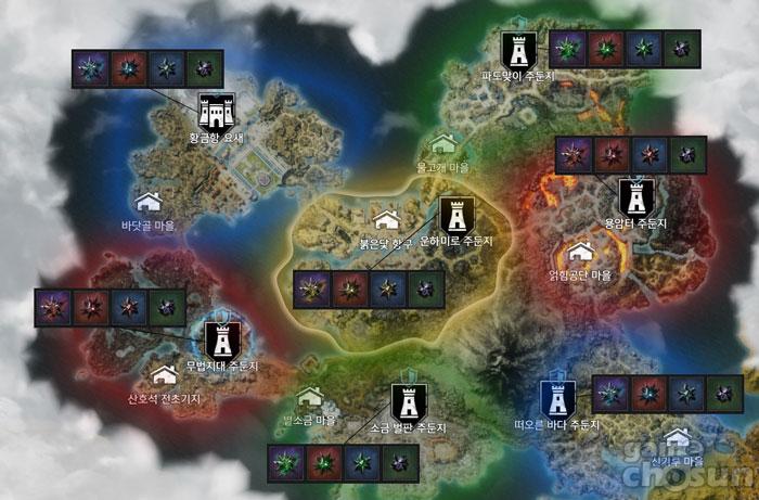 각 희귀 심연석의 색상은 검은칼을 설치하는 지역에 따라서 결정되므로 이를 미리 파악하는 것이 매우 중요하다. 지역별로 얻을 수 있는 희귀 심연석 색상을 쉽게 확인할 수 있도록 정리해봤다.