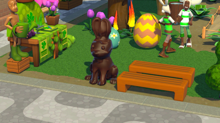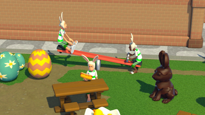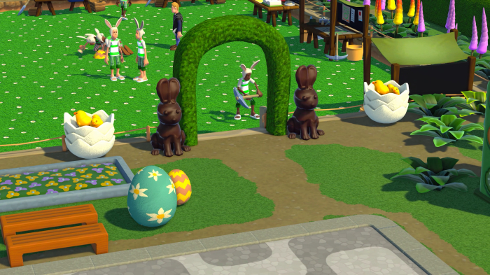 이번 달걀 찾기와 함께 제공되는 Two Point Campus의 봄 업데이트에서는 신규 의상인 귀여운 토끼귀와 초콜릿 토끼, 장식용 병아리, 그리고 거대 달걀 장식물 등 봄을 테마로 한 재미있는 아이템이 새로 추가된다.