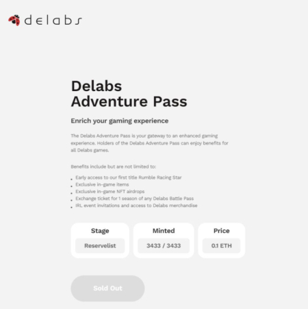 어드벤처패스는 미국 현지 시간으로 6일(수) 오후 7시 민팅 ‘Allow List Sale’(사전 예약 고객 판매)을 시작했고, 일반 구매자 판매 없이 민팅(발행)을 완료했다. 민팅된 총 3,433개의 패스 중 433개는 디랩스의 내부 물량으로 보유하게 된다.