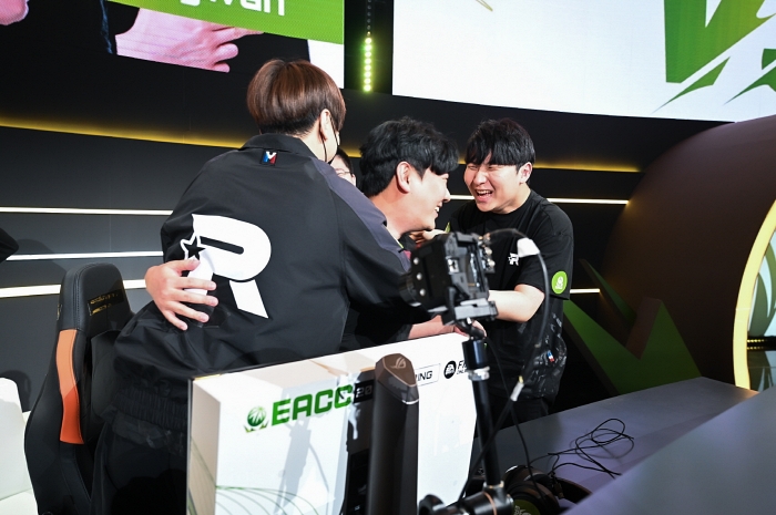 퍼펙트 플레이를 펼친 KT 롤스터 선수들은 경기가 끝나고 그 어느때보다 감격스러운 순간을 만끽했다. 수상 소감을 전하는 무대에서 곽준혁 선수는 “최근 EACC에서 한국팀이 좋은 모습을 보이지 못했는데 국내에서 ‘eK 리그’가 출범하면서 한국 선수들의 실력이 상향 평준화된 것이 우승에 영향을 준 것 같다”고 말하며, 박정무 그룹장 등 넥슨 관계자에 대한 감사 의사 또한 밝혔다. 이어 김정민 선수는 “팀원들과 호흡이 잘 맞고 연습 과정에서 좋은 결과가 나올 수 있게끔 준비가 잘 돼 결과 또한 좋은 것 같다”고 소감을 말했다.