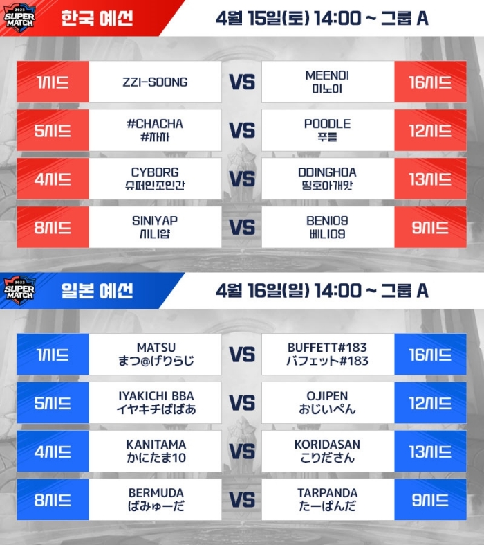 1차 예선은 한국과 일본에서 각각 15일과 16일 오후 2시에 온라인으로 진행한다. 국가별로 총 16명의 선수를 8명씩 2개 그룹으로 나누고, 3전 2선승 더블 엘리미네이션 토너먼트 형식으로 승부를 가릴 예정이다. 이번 경기는 첫 번째 그룹의 예선전이며, 두 번째 그룹 예선은 양국에서 오는 22일과 23일 각각 진행된다.