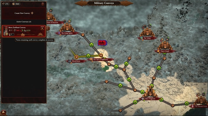 ● 호송대는 전쟁 병기를 팔고 다양한 자원들을 대가로 받을 수 있는데, 그 과정에서 각종 전투를 벌이고 노동력을 교환하면서 재화의 흐름을 극대화하게 됩니다.