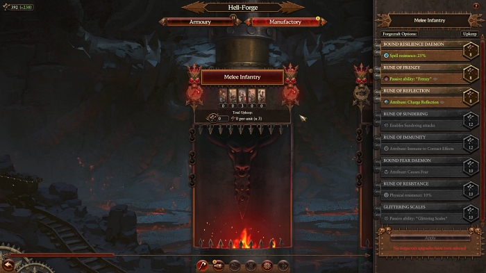● 지옥대장간으로는 각종 특수 설계를 화염으로 주조하여 카오스 드워프의 지옥불 군단을 더욱 강화할 수 있으며, 강화 효과 별로 각종 흉악한 전투 보너스를 제공합니다.