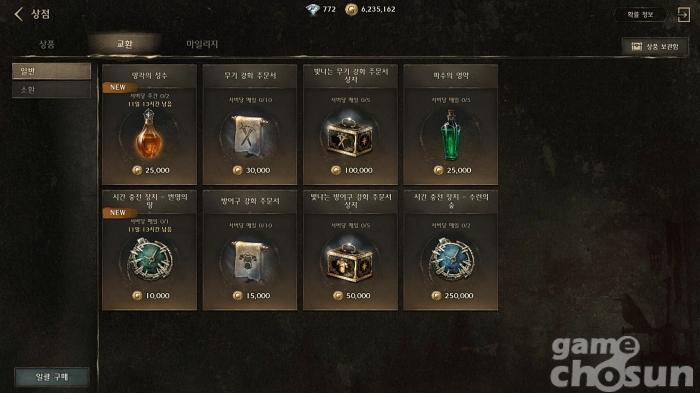 강화 주문서과 세공석은 던전 몬스터 처치, 유료 상점, 마을 NPC 상점, 제작 등 다양한 경로로 획득할 수 있다. 유료 상점에선 매일 무기, 방어구 강화 주문서를 한정된 수량만큼 골드로 판매하며, NPC 상점에선 아티팩트 강화 주문서와 세공석을 한정된 수량만큼 구입할 수 있다.