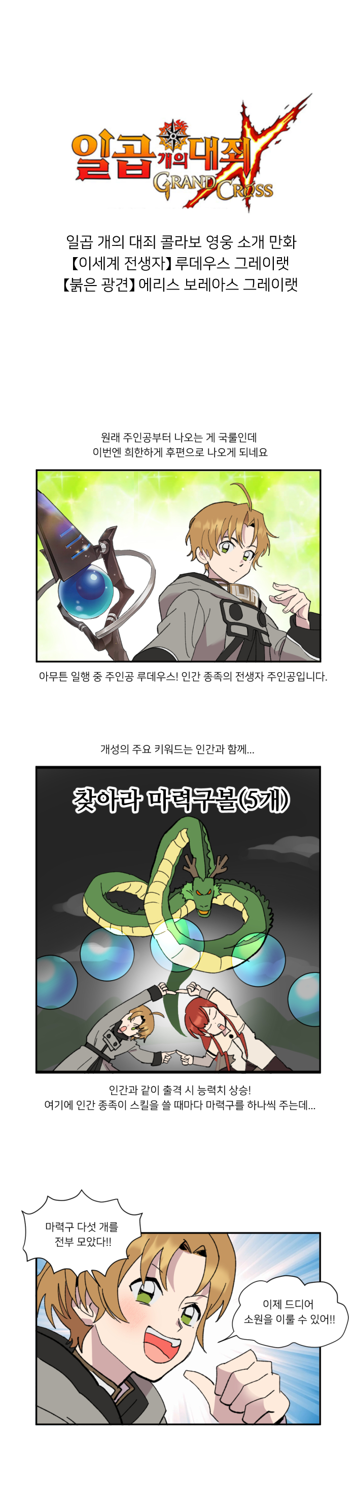 이번 작품은 일곱개의대죄에서 지난 27일 시작된 '무직전생' 컬래버레이션의 신규 영웅 4명 중, 루데우스와 에리스를 다룬다. 두 영웅은 인간 속성으로 인간족과 함께 출격했을 때 시너지를 발휘하는 타입. 현재 최강으로 꼽히는 얼티밋 에스카노르나 7재앙 록시에 이에 속한다.