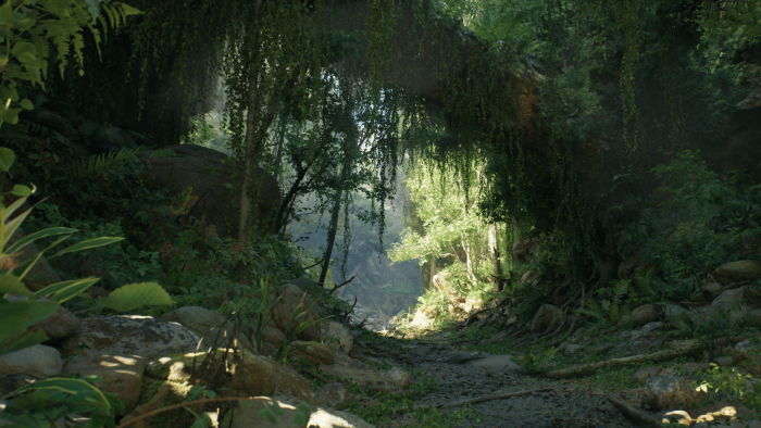 먼저, 지난 4월 GDC에서 처음 공개됐던 <일렉트릭 드림즈> 테크 데모를 통해 첫선을 보인 ‘프로시저럴 콘텐츠 생성(Procedural Content Generation, PCG) 프레임워크’와 ‘서브스트레이트’ 기능이 언리얼 엔진 이용자들이 빠르게 사용해 볼 수 있도록 이번 업데이트에 실험 기능으로 추가됐다. <일렉트릭 드림즈> 테크 데모는 광활한 자연의 오프로드 환경에서 ‘리비안 R1T’ 전기 트럭이 바위와 뿌리를 밟을 때 타이어가 정밀하게 변형되고, 부드러워지는 실제와 같은 서스펜션, 사실적인 유체 시뮬레이션 및 워터 렌더링 등을 확인할 수 있어 공개 이후 전 세계 크리에이터들의 큰 관심을 모았던 바 있다.
