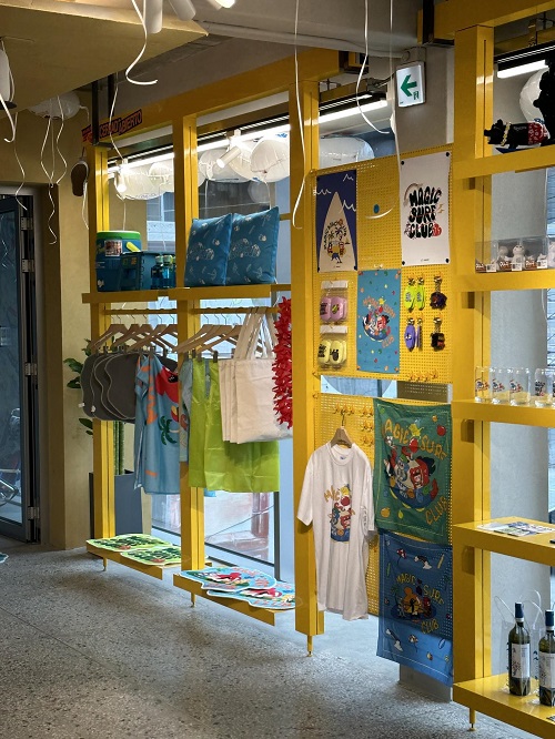 팝업스토어 1층은 우주선을 타고 등장한 ‘배찌’, ‘다오’, ‘펭키’ 캐릭터 그래픽과 함께 마치 ‘매직 서프 클럽’ 행성에 온 듯한 느낌을 선사하는 야자수, 파도, 물폭탄 등의 대형 조형물로 꾸며졌으며, 컬래버 그래픽 테마의 디저트를 맛볼 수 있는 카페 공간이 준비됐다. 2층에서는 비치타월부터 의류, 에코백, 컵 등 약 30종의 다채로운 한정 컬래버 상품을 만나볼 수 있다. 컬래버 제품은 6월 12일 에스아이빌리지(S.I.VILLAGE)와 ‘빅웨이브 컬렉티브’ 네이버스토어에 출시되며, 6월 19일부터 29CM, 무신사, SSF, W컨셉 온라인몰에서 판매된다.