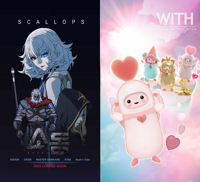 신규 IP ‘스칼롭스 프로젝트’는 스칼롭스 세계관을 중심으로 히어로 5인의 이야기를 그린 유니버스 형식의 웹툰이다. 라이선싱 재팬 2023에는 스칼롭스 세계관의 배경이 되는 소돔을 포함해 크로우, 두주불사, 척살, 노아의 튜브 등 5개의 작품을 선보인다. 또한 파스텔 풍의 아름다운 그래픽, 완성도 높은 음악이 돋보이는 힐링 게임 ‘WITH: Whale In The High’도 출품한다.