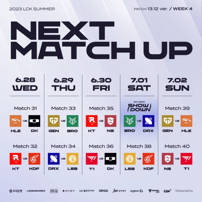 2023 LCK 서머 4주 차는 네이버 e스포츠&게임, 유튜브 LCK 채널 등 온라인 플랫폼을 통해 생중계된다.