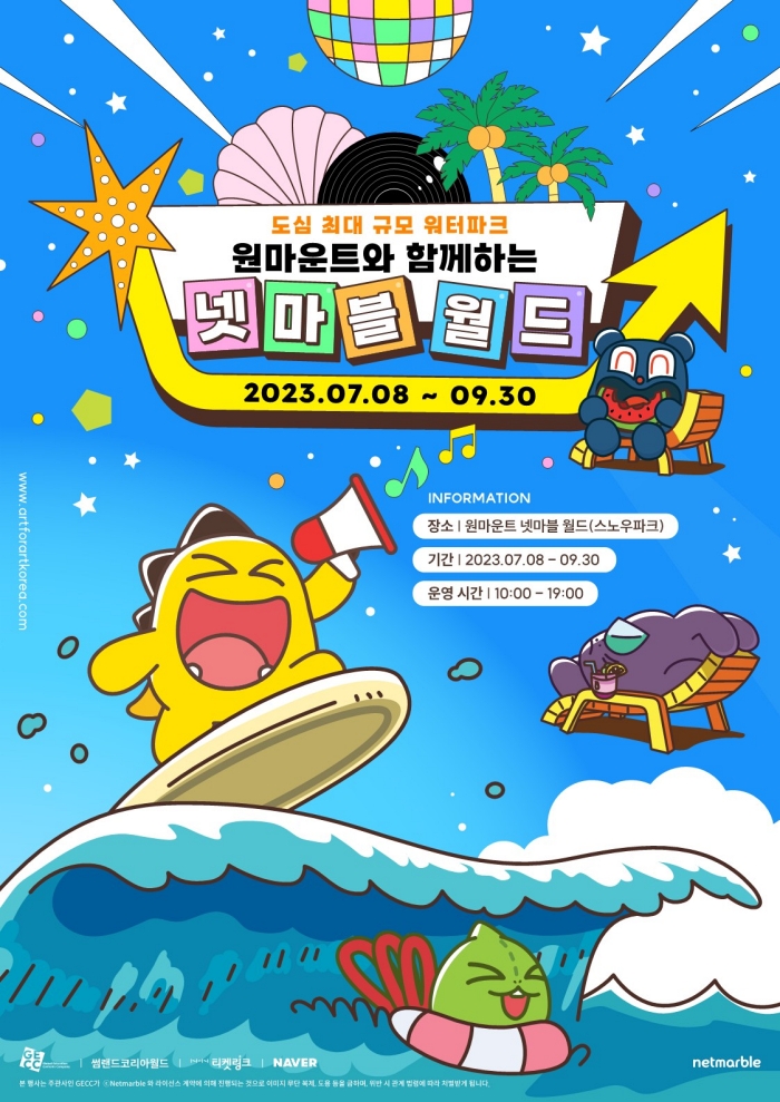 원마운트는 워터파크, 스노우파크 등 놀이시설과 즐길거리가 가득한 복합문화공간으로 이번 협업을 통해 기존 스노우파크를 ‘넷마블프렌즈’, ‘모두의마블’, ‘머지 쿵야 아일랜드’, ‘스톤에이지’ 등 넷마블의 대표 IP를 활용한 ‘넷마블 월드’로 새롭게 단장해 오는 9월 30일까지 운영한다.