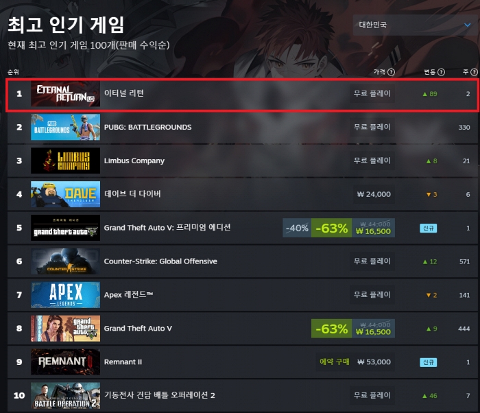 아울러, 지난 20일 정식 서비스 시작한 ‘이터널 리턴 1.0’은 스팀 인기 게임 1위에 이어, 개발사의 초기 목표인 동시 접속자 2만 명도 함께 달성했다.
