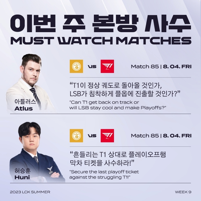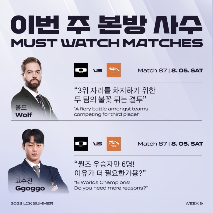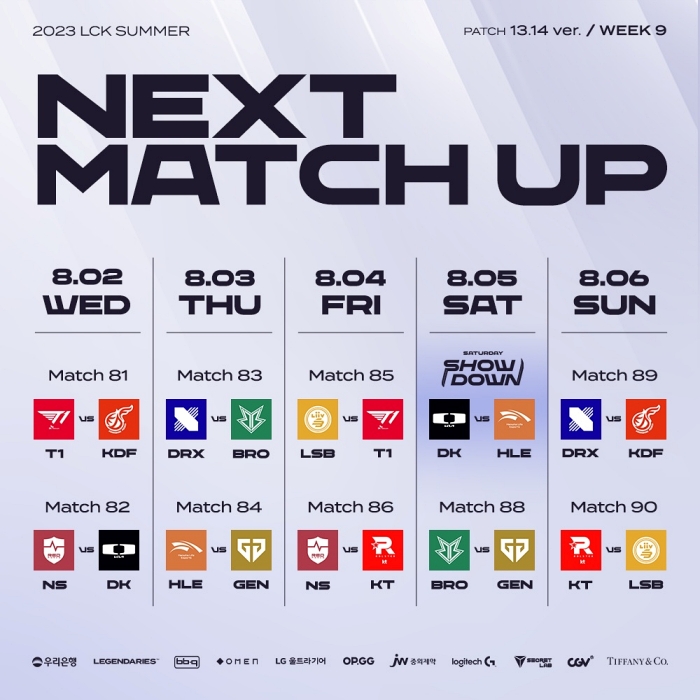 2023 LCK 서머 9주 차는 네이버 e스포츠&게임, 유튜브 LCK 채널 등 온라인 플랫폼을 통해 생중계된다