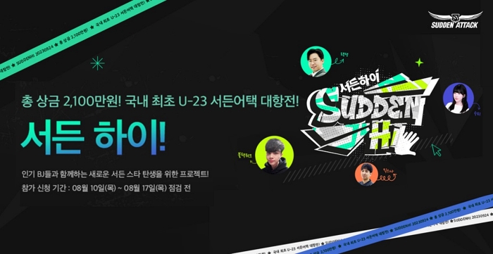 8월 17일까지 2000년생(15세)부터 생일이 지난 2008년생(23세) 이용자는 누구나 사전 선정된 BJ팀들 중 원하는 팀을 선택해 ‘서든하이’에 참가 신청할 수 있다. 중복 신청도 가능하며, 8월 19일, 20일 BJ팀별로 자체 오디션을 진행해 예비 1인을 포함한 총 6인의 참가자를 선발한다.