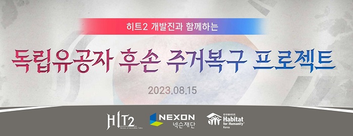 한편 ‘히트2’는 이용자들의 성원을 선한 영향력으로 보답하기 위해 지난해 9월 넥슨재단과 함께 사회공헌 캠페인 ‘히트투게더’를 선보이고 한국해비타트와 업무협약을 맺었다. 이후 2022년 폭우 수해지역 피해가정 지원에 이어 이번 독립유공자 후손 대상 지원까지, 누적 1억원의 기부금을 ‘히트투게더’ 캠페인을 통해 주거환경 개선 사업에 전달하게 됐다.