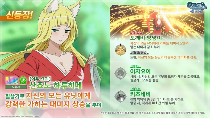 Aiming은 무료 게임 1위 달성을 기념해 모든 유저에게 일반 뽑기 티켓 10장을 선물할 계획이다. 이와 함께 기간 한정 이벤트 ‘하루히메의 모험’을 실시하고 있으며, 새로운 캐릭터 ‘여우 요괴’ 산죠노 하루히메의 픽업 뽑기가 진행 중이다.