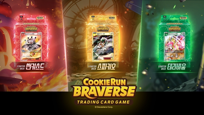 스타터덱 3종은 강력한 공격으로 상대를 제압하는 덱인 ‘썬키스드’, 브레이크 에리어를 관리해 상대의 전략을 방해하고 역습하는 덱인 ‘스파키오’, 서포트 에리어의 코스트를 증가시켜 후반 공격에 우세한 ‘테라바움’으로 구성됐다. 스타터덱은 상설매장 ‘쿠키런: 브레이버스 스테이션’, 공인카드샵, 전국 GS25 매장, 쿠키런 스토어에서 만나볼 수 있으며, 공식 판매가는 11,000원이다.