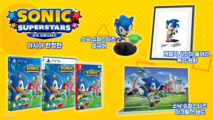 [자료제공 = 세가퍼블리싱코리아] 세가퍼블리싱코리아(대표 사이토 고)는 2023년 10월 17일(화) 발매 예정인 『소닉 슈퍼스타즈』의 PlayStation®5, PlayStation®4, Nintendo Switch™판 패키지 예약 접수를 오늘 9월 5일(화) 오후 12시부터 개시한다고 밝혔다.