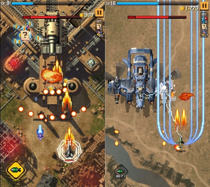 ‘스트라이커즈 1945: RE’는 각 스테이지에서 획득하는 경험치에 따라 레벨이 오르고, 그때마다 선택할 수 있는 스킬이 등장한다. 선택할 수 있는 스킬은 공격형과 지원형으로 구분된다.