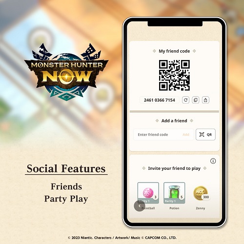 친구 추가는 QR 혹은 친구 코드, 초대 코드로 신규 플레이어를 초대할 수 있다. 함께 게임을 즐길 수 있을 뿐만 아니라 친구도 회복약과 페인트볼 등의 보상을 얻을 수 있으며, 근처의 4명의 헌터들과 함께 여럿이서 멀티플레이를 즐길 수 있다.