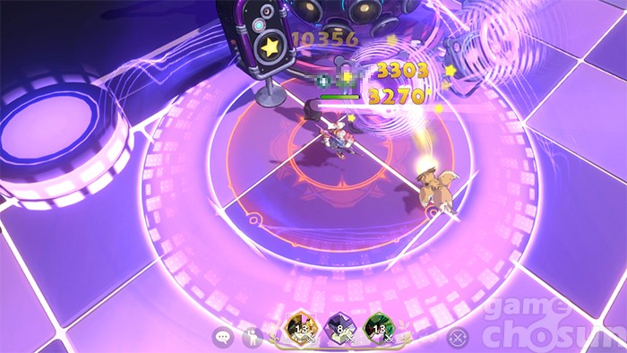 기절을 유발하는 상시 패턴이지만, 3방향 공격과 마찬가지로 타일 교차점에 서서 쉽게 회피 가능 = 게임조선 촬영