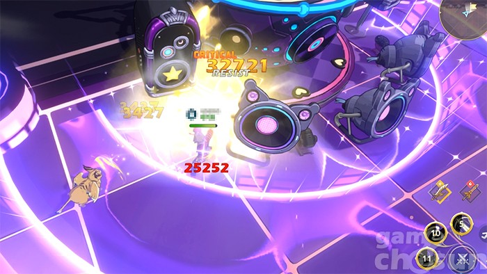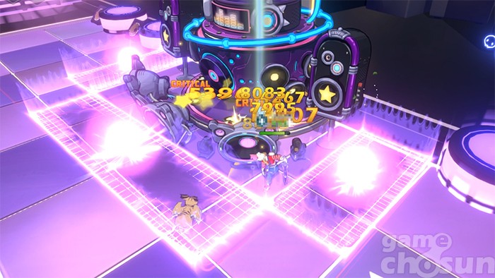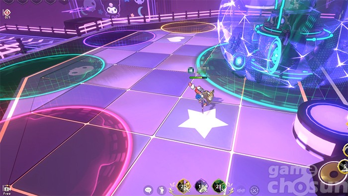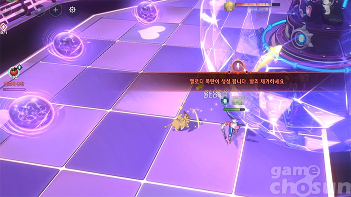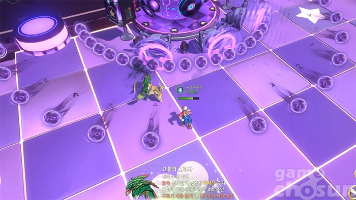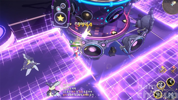 DJ 쿠로미의 디제잉 머신이 무적 상태가 되며, 폭탄을 처리하지 못해 투사체에 맞으면 춤 상태가 된다 = 게임조선 촬영