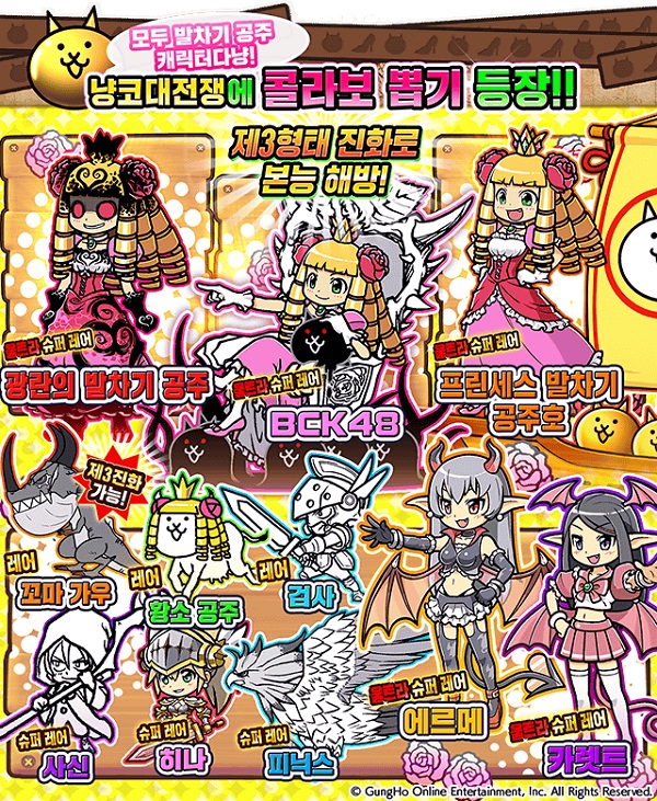 [자료제공 = 포노스] 포노스(대표 츠지코 요리카츠)는 병맛&귀염 타워디펜스 게임을 대표하는 <냥코대전쟁>에서 GungHo Online Entertainment 주식회사의 모바일 게임 ’발차기 공주 돌격대’와의 콜라보레이션 이벤트를 2023년 11월 13일 11시부터 개최한다고 밝혔다.
