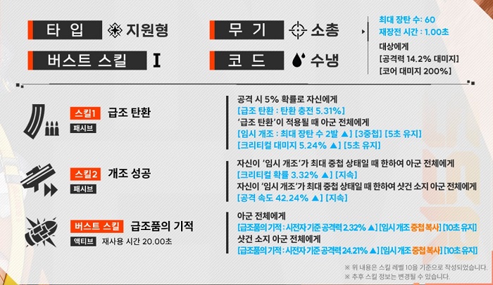 즉 패시브 스킬 '개조 성공'을 발동하기 위해서는 1번 패시브 스킬인 '급조 탄환'의 임시 개조 버프를 최대 중첩 상태로 만드는 것이 포인트라 할 수 있겠다.